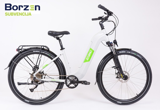 Apes EEC 6 je mestna čebela četrte generacije, ki vas bo varno in z lahkoto peljala po vaših poteh v službo in po nakupih. Kolo je zaradi prometne gneče v urbanih središčih in pomanjkanja parkirišč primerno transportno sredstvo, ki ne onesnažuje okolja in ima pozitivne učinke za vaše zdravje. Ima vse, kar potrebujete za varno in udobno vožnjo. "Easy-Entry" okvir omogoča uravnotežena geometrija in spuščeno težišče za lažji in pomirjujoč občutek vožnje ter odlično vodljivost pri nizkih hitrostih. Verzija 6 je opremljena z centralnim motorjem in hidravličnimi disk zavorami. Novost za leto 2024 Za leto 2024 smo na kolesu Apes EEC6 izboljšali kapaciteto baterije in izgled kolesa z novim prtljažnikom. Estetsko privlačnost kolesa pa smo osvežili z novima barvama, osvežujočo Papirus belo in očarljivo Antrancit sivo. Pogon in energija Pogon je izboljšan z dvojno sklopko, kar pomeni večja učinkovitost delovanja in izboljšanje udobja prestavljanja. Sredinski električni motor Econo deluje na principu senzorja navora, kar pomeni, da motor zaznava moč s katero pritiskate na pedala in vam glede na izbrano stopnjo pomoči s sorazmerno enako močjo pomaga. Odlično delovanje tako po ravnini kot tudi v hrib zahvaljujoč 80 Nm navora. Kolo je opremljeno z baterijo Econo, ki je plod našega razvoja in je proizvedena v našem centru. Je enostavna za rokovanje. V letu 2024 lahko izbirate med baterijama z kapaciteto 540 Wh in 720 Wh. Varnost Kolo Apes EEC6 je opremljeno z zanesljivimi hidravličnimi disk zavorami TEKTRO, ki omogočajo varno in hitro zaviranje in ustavljanje. Prenesejo velike sile in delujejo v vsakem vremenu enako. Bodi viden in povečajte svojo varnost in čas na kolesu z sprednjo in zadnjo led lučjo. Praktičnost Kolo je opremljeno z nosilcem za krmilo nastavljivim po višini in tudi po naklonu, tako da ga lahko prilagodite svojim potrebam in se na kolu počut